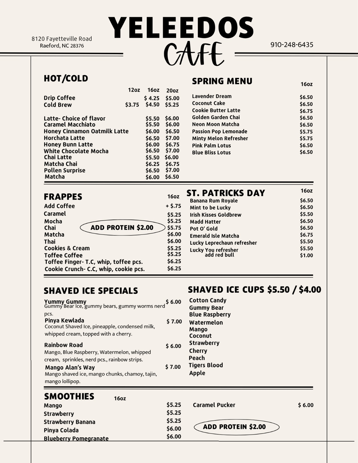 SPRING MENU THNAK YOU FOR STOPPING BY